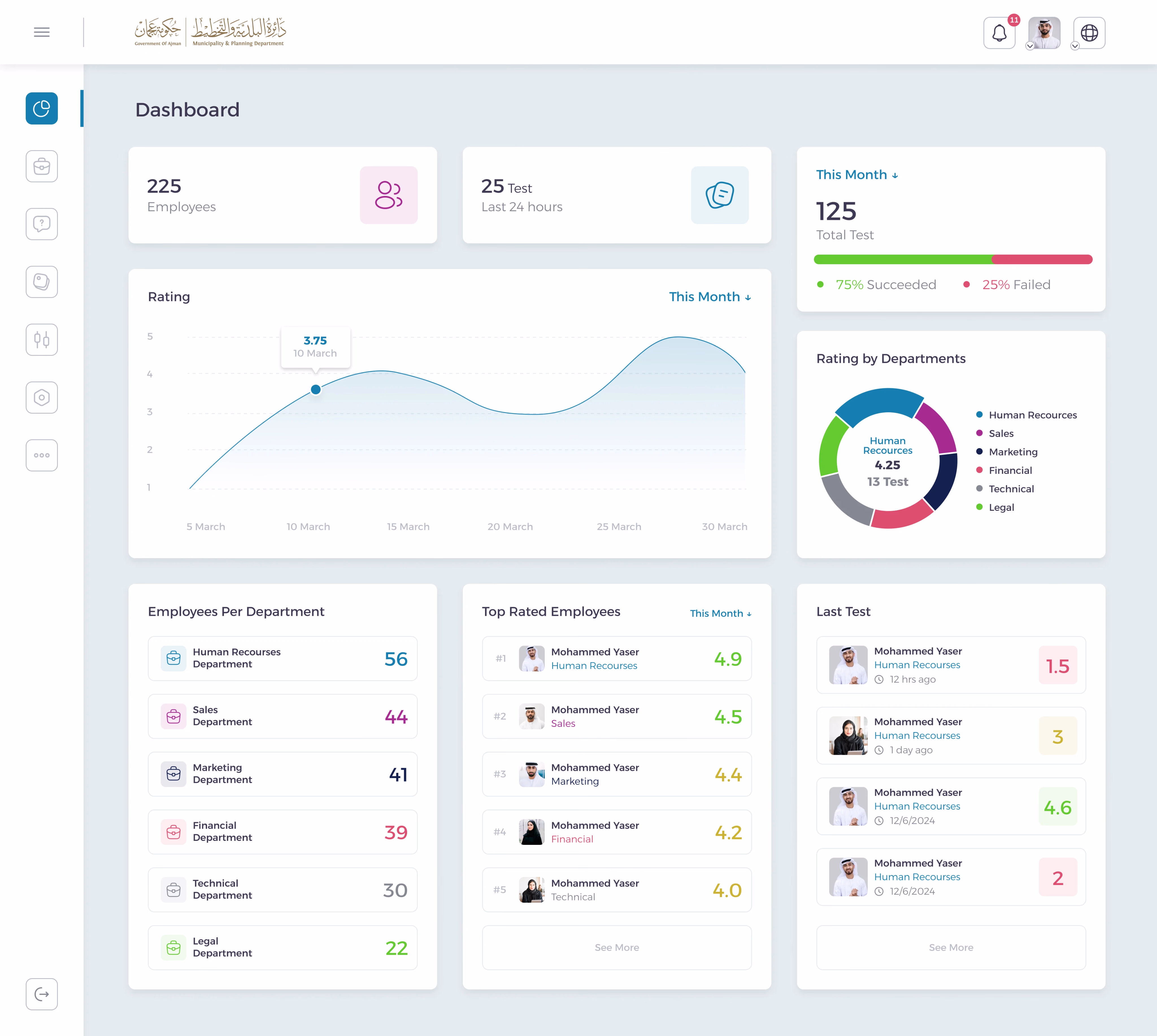The advanced analytics dashboard provided HR teams with comprehensive visualizations of performance trends, knowledge gaps, and departmental metrics. These insights enabled strategic planning for employee development, targeted training programs.