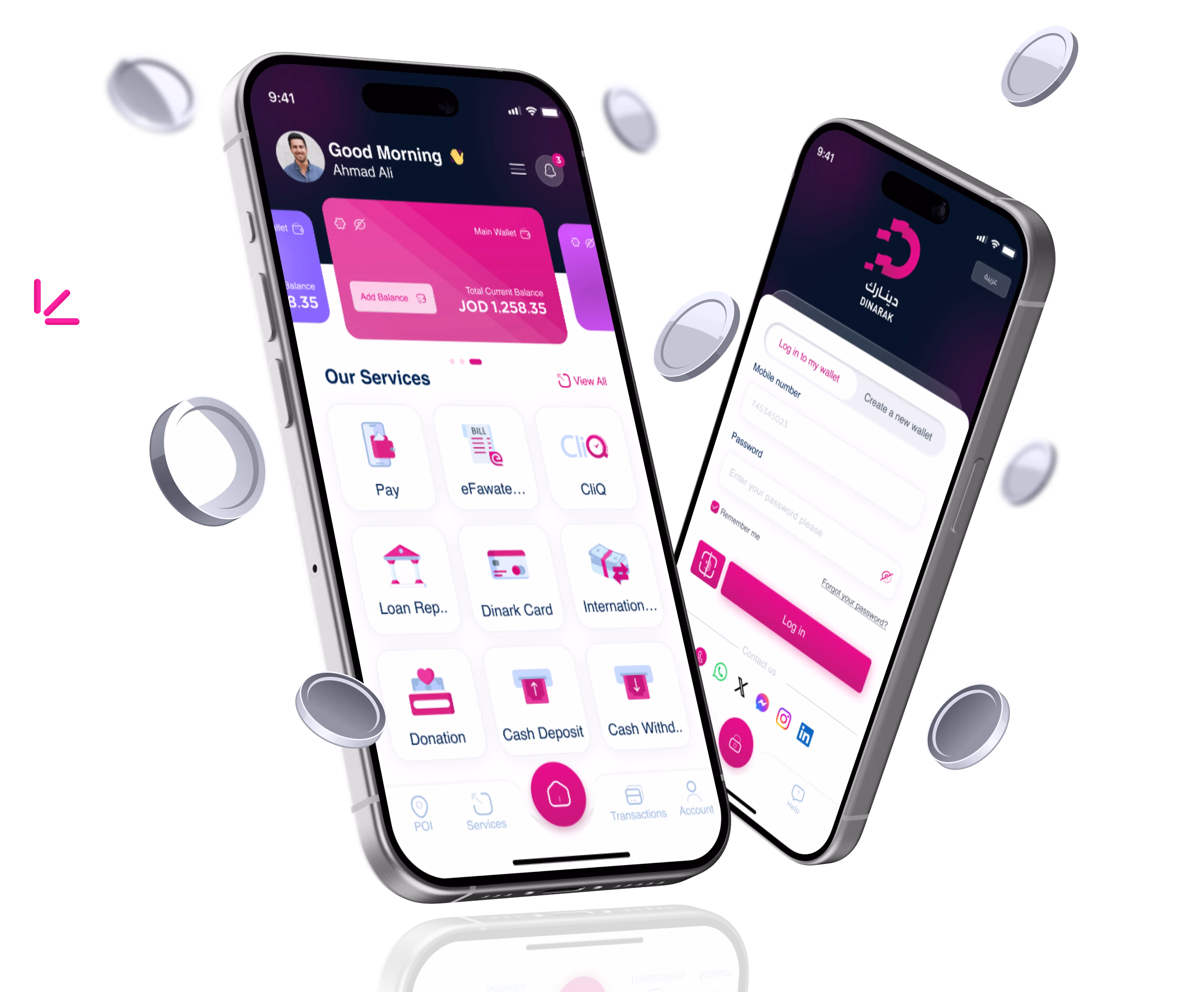 Dinarak is a licensed mobile wallet and payment app regulated by the Central Bank of Jordan, offering a wide range of financial services to both banked and unbanked users. FikraTech was tasked with revamping the Dinarak app to offer a more secure, user-centric, and scalable mobile experience. The updated app provides seamless digital payments, peer-to-peer transfers, eFawateercom integration, and international remittances—all from a sleek, intuitive interface.