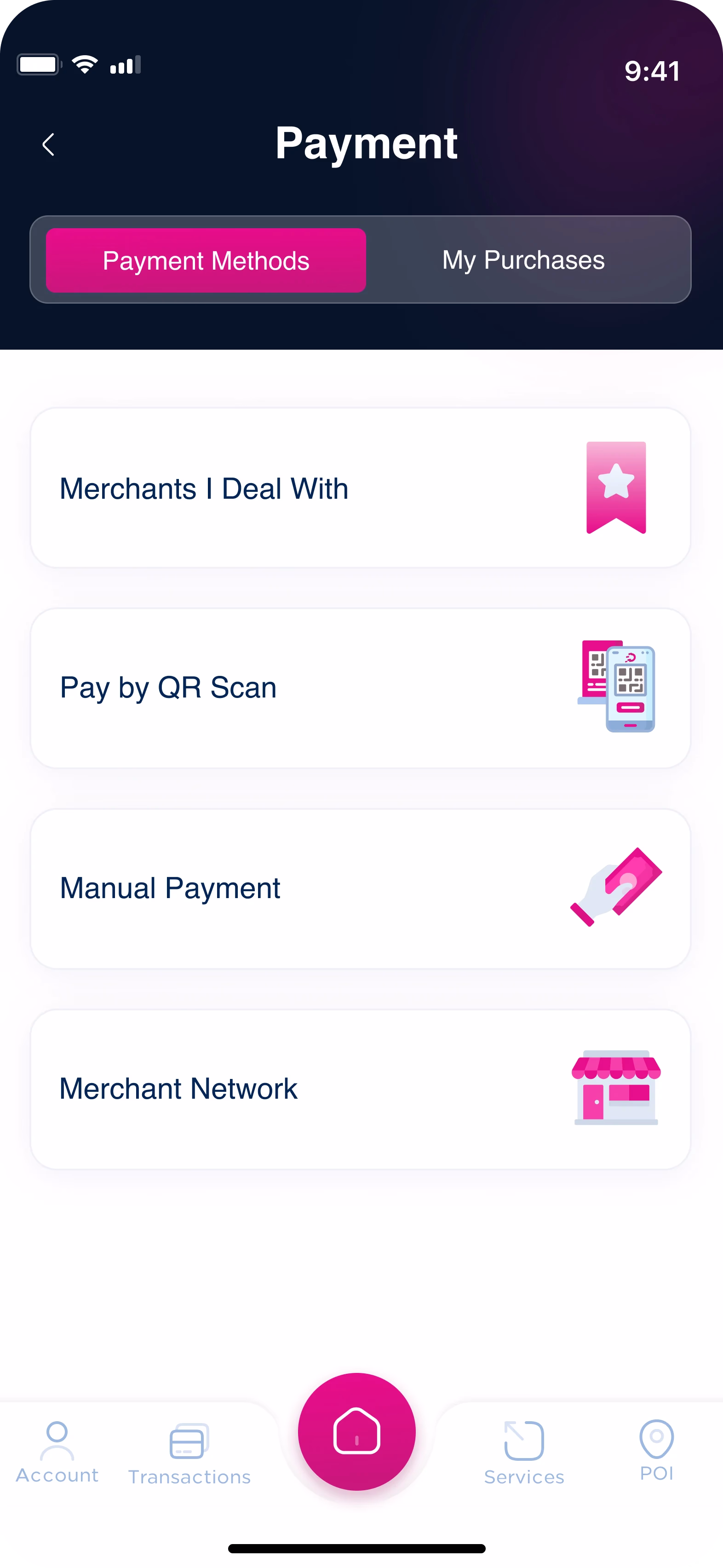 Pay at stores quickly using QR code scanning or manual merchant ID entry. Dinarak supports secure, real-time payments at partner merchants, offering users a cashless, contactless experience that's fast, convenient, and fully integrated with their wallet balance.