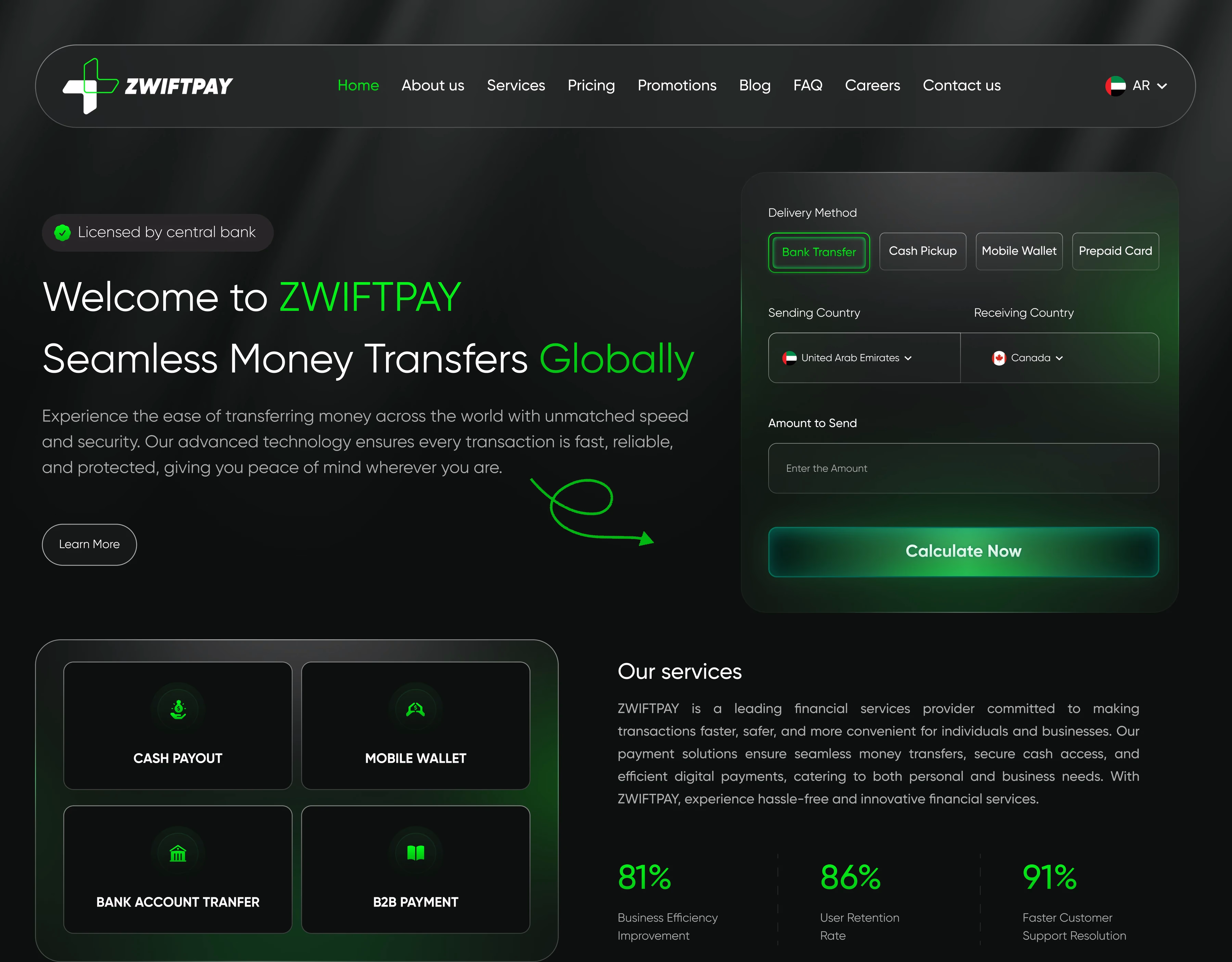 Designed with a mobile-first approach, our platform boasts a multilingual interface that adapts seamlessly to any device. Its sleek and modern design ensures that users experience intuitive navigation and responsive interactions, making the process of sending money not just simple, but truly enjoyable.